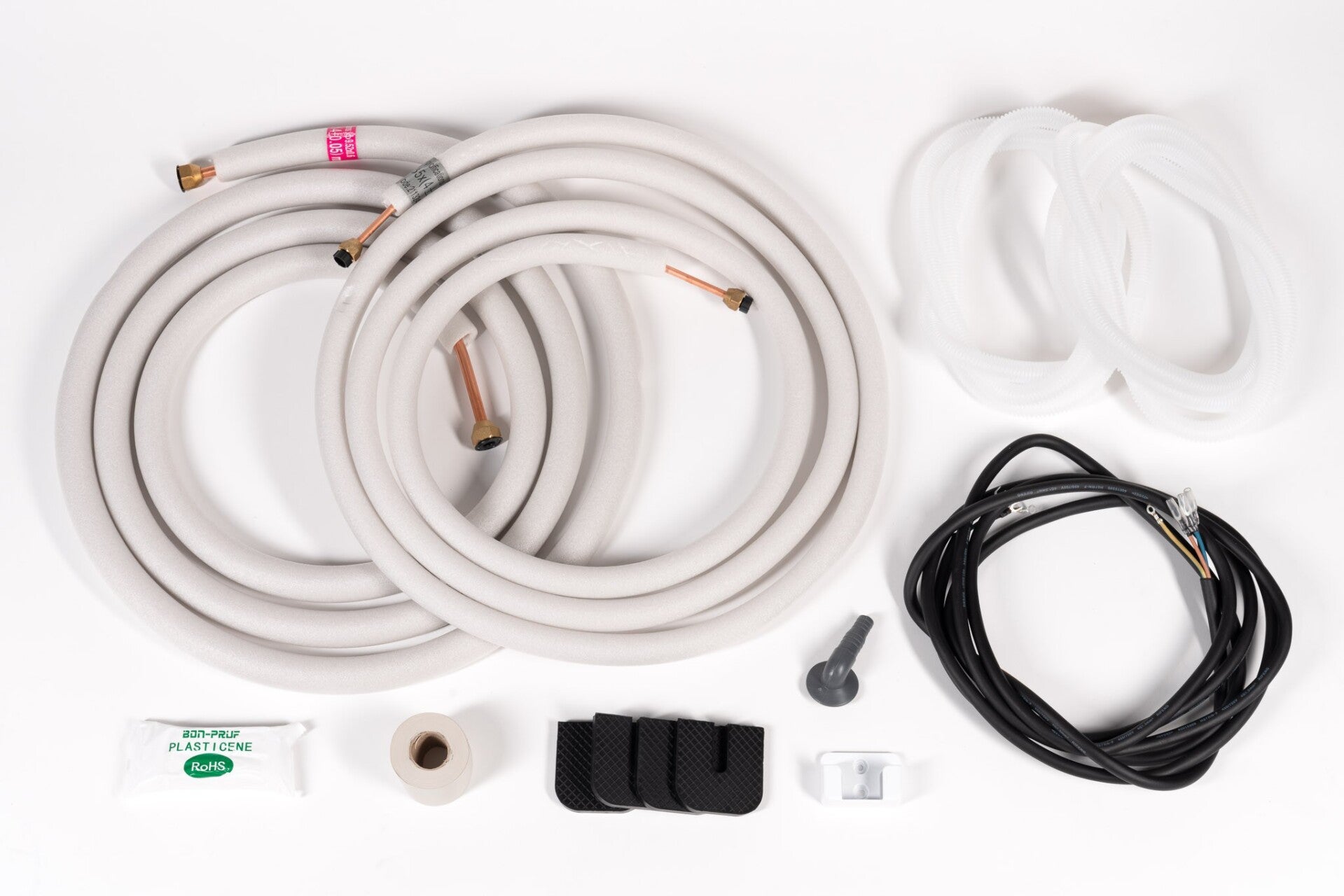 DE AC1 FREEDOM 3.5KW / 12000Btu wordt aan u geleverd als een ALL- IN ONE PAKKET (zonder meerprijs) inclusief alle aansluitbenodigdheden o.a.; 4M Duo koperleiding 1/4 "x 3/8" + 1. afvoer condensslang, Aanstuur bedrading 220v tussen de binnen- en buitenunit, en een 220v voedingskabel 5M met een vaste stekker. * Deze leveren wij met een Nederlandse Handleiding! Deze is in de doos bijgevoegd, Hierin vind u info over de airconditioner, Tevens staat hier ook de Montage handleiding in